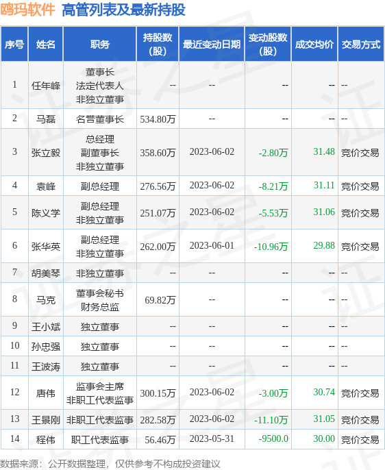 鸥玛软件的高管列表及最新持股情况如下: