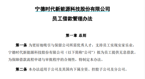 宁德时代表示,公司可向员工提供的借款总额度限额为公司最近一期经审计净资产的0.3%。在此额度范围内,员工归还的借款及尚未使用额度可循环用于后续员工借款申请。借款期限最长不超过十年(含),具体借款期限以公司与员工签订的借款协议约定为准。