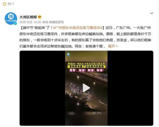 “广州房东半夜还在练习赛龙舟”一度冲上了微博热搜。