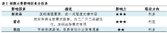 供应方面:短期货源紧俏的情况难以改变,贸易商回收废轮胎困难,从而低价出货意愿差,短期来看,废轮胎货源紧俏对市场价格形成一定的托底作用。