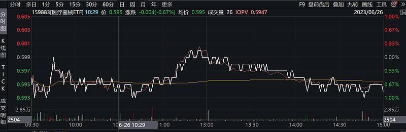 医疗器械ETF指数成份股中,今日仅仅19只上涨。$福瑞股份(300049)涨3.02%、金域医学涨2.28%;$祥生医疗(688358)大跌10.24%、天智航、冠昊生物跌超4%;天益医疗、万孚生物、奥精医疗跌超3%。