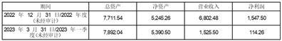 3、安德思考普2022年度及2023年度一季度的主要财务数据如下: