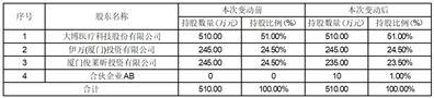 2、公司大股东大博通商拟向公司持股比例51%的控股子公司施爱德(厦门)医疗器材有限公司(以下简称“施爱德”)的股东厦门俊莱昕投资有限公司(以下简称“俊莱昕”)增资。上述增资完成后,大博通商将间接持有施爱德9%股权。