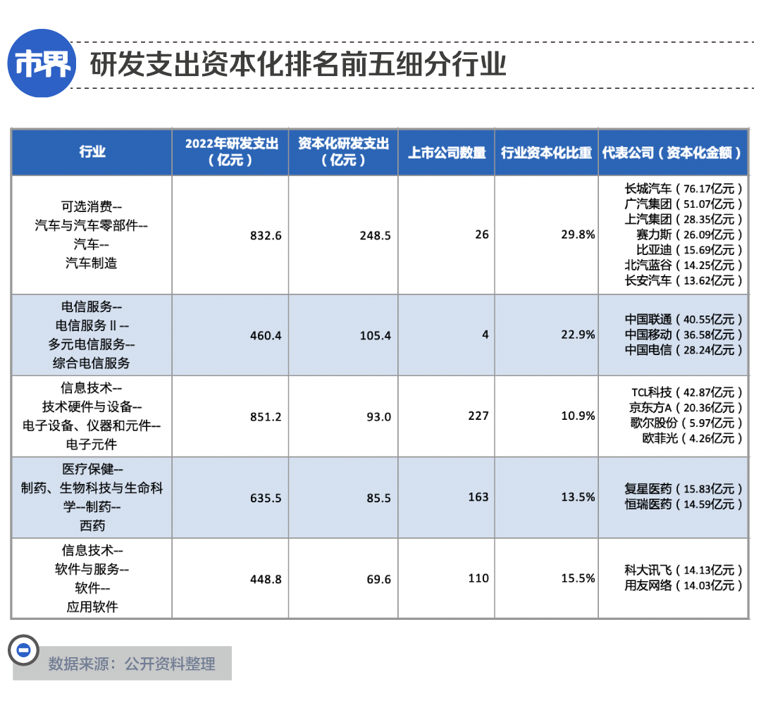 那么A股最善于将研发开支资本化的行业和企业有哪些?