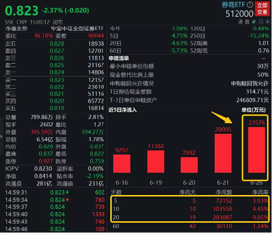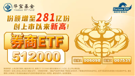 截至6月26日,券商ETF(512000)最新基金份额攀升至283.96亿份,续创上市以来新高。