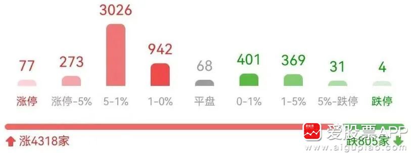 说回盘面,连续4天揍猛后,今天终于给了颗枣。昨天还4000多家下跌,今天就4300只上涨,仅805只下跌,中位数+1.75%!你们都回血了吗?