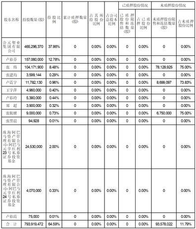 (2)张建均和卢彩芬夫妇为公司实际控制人,公元集团为公司控股股东(张建均持有公元集团 75%股权,卢彩芬持有公元集团 25%股权),张炜为张建均之弟,王宇萍为张炜之妻,卢震宇为卢彩芬之弟,卢彩玲为卢彩芬之妹,郑超与卢彩玲为夫妇,张航媛为张建均、卢彩芬之女,张翌晨为张建均、卢彩芬之子,卢彩霞为卢震宇之姐,张建均、张翌晨于2020年12月29日珠海阿巴马资产管理有限公司-阿巴马元享红利23号私募证券投资基金签订了一致行动协议,卢彩芬于2022年1月14日与珠海阿巴马资产管理有限公司-阿巴马元享红利24号私募证券投资基金签订了一致行动协议。根据《上市公司收购管理办法》规定构成一致行动人。