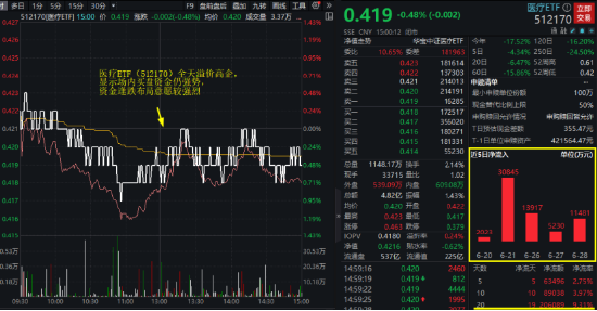 1、资金面仍是关注重点,医疗ETF(512170)全天高溢价