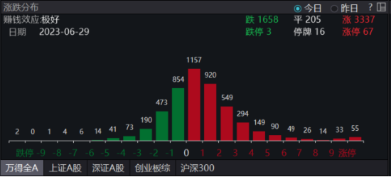 个股方面,总体上两市个股涨多跌少,共计3337只上涨,1658只下跌,205只持平。赚钱效应极好!
