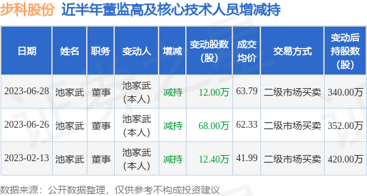 步科股份近半年内的董监高及核心技术人员增减持详情如下: