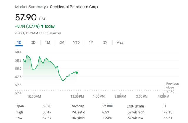 除了持有西方石油公司的普通股和优先股外,伯克希尔还拥有近8400万份认股权证,可以以略低于每股60美元的价格购买西方石油的普通股。