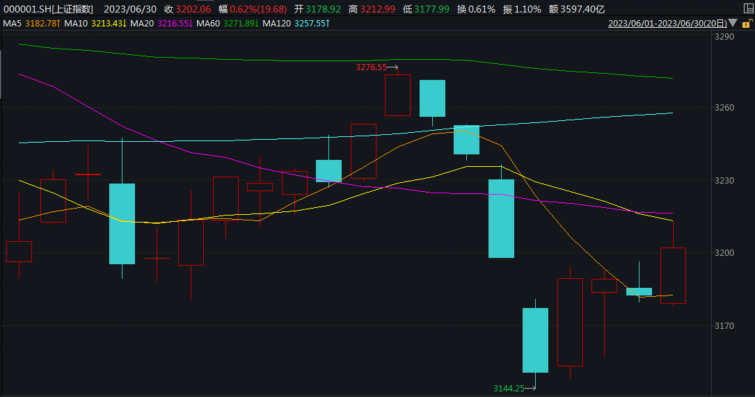 回顾6月A股市场走势,在本月20个交易日中,上证指数有13天上涨,期间整体微跌0.08%;