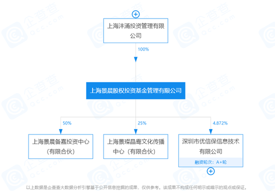 在这一系列机构的股东和高管名单中,反复出现的胡健岗和黄金波,以1:1创立的上海沣涌投资管理有限公司(简称:沣涌投资),则是景晨基金唯一股东。