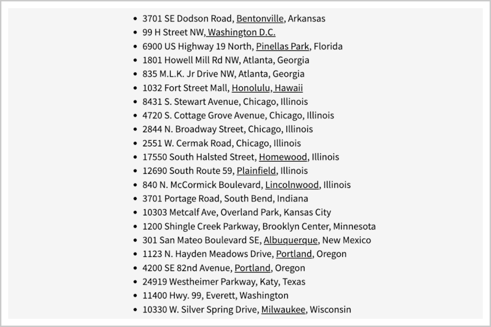 3月11日,继宣布关闭芝加哥4家门店后,沃尔玛再次发声,将关店数量提升到9个州的17家分店。