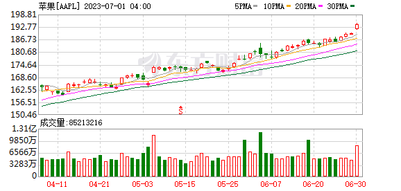 苹果公司股价6月30日收盘上涨2.3%,创下新高,首次收盘市值突破3万亿美元里程碑,也是美国首家市值突破3万亿美元的公司。