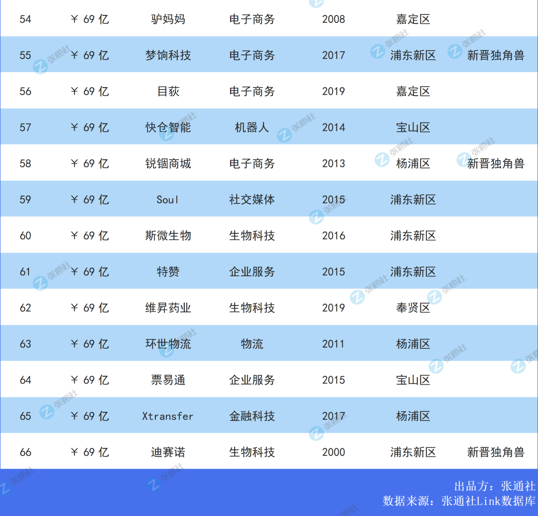 从企业估值来看,在上海66家独角兽中,63.6%的企业估值达百亿。其中最高的是小红书,估值高达1000亿,位居上海第一;估值达690亿的得物,位列第二名。