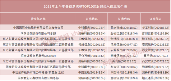 从龙虎榜成交总额前十名的证券公司营业部买入前三名的个股看,投资者上半年较为青睐AI题材。