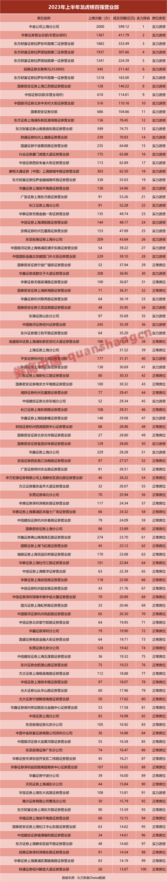 上半年落下帷幕,券商龙虎榜百强营业部数据也随之出炉。