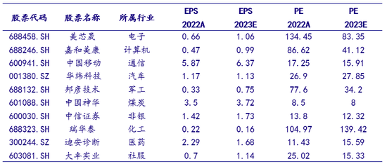中国移动:1)数字经济需求叠加数字要素等政策利好,运营商行业景气度有望提升;2)中国移动基本面持续改善,营收有望维持双位数增长,龙头地位有望进一步提升;3)2023一季报披露,全年业绩有望维持高增长,叠加5G应用主题催化等,中国移动加大成长属性,转向具备长期配置价值,并且稳定的成长性有望带来进一步的估值溢价。