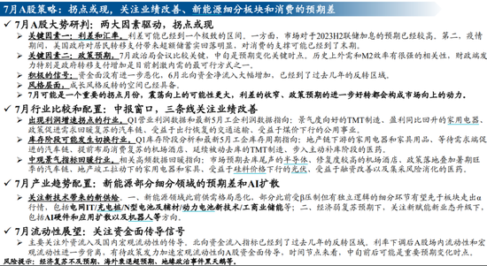 二是政策预期仍处谷底,前期市场激进的政策预期已不断下修,预计7月国内逆周期政策不会缺席,且美联储重启加息概率不高,国内宏观流动性偏松,而中美关系扰动仍在。