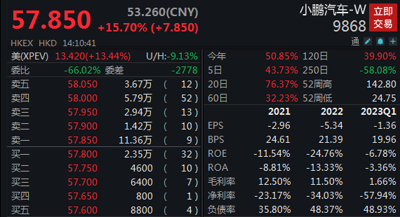 7月3日,港股小鹏汽车、理想汽车均大涨,截至发稿,小鹏汽车股价报57.85港元,涨15.7%,理想汽车报146.158港元,涨7.87%。