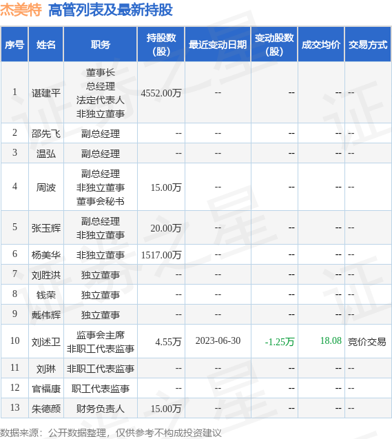 杰美特近半年内的董监高及核心技术人员增减持详情如下: