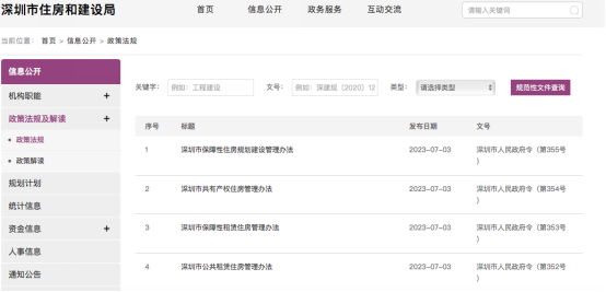 具体来看,深圳住建局发了四项规章,分别对公共租赁住房等三类住房的保障对象、申请条件、供应分配方式、租售价格标准、用地保障、建设筹集主体和渠道、建设标准、监督管理等进行了规范。规章将于8月1日正式实施。