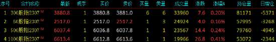 2023年7月4日,股指期货窄幅震荡,沪深300股指期货(IF)主力合约涨0.20%,上证50股指期货(IH)主力合约涨0.16%,中证500股指期货(IC)主力合约涨0.24%,中证1000股指期货(IM)主力合约涨0.41%。
