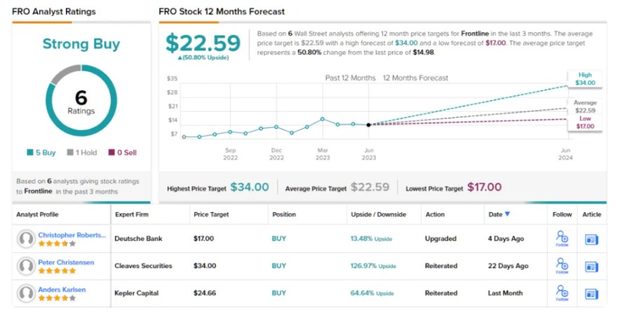 Robertson予以Frontline“买入”评级,17美元的目标价意味着未来12个月将有17%的上涨空间。