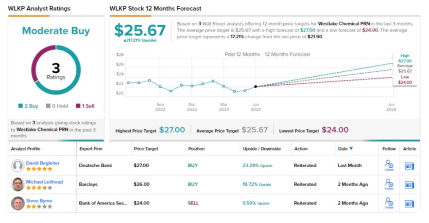Begleiter给予Westlake“买入”评级,目标价为27美元,这意味着该股未来12个月有23%的上涨空间。而根据当前股息率和预期的价格升值,该股的潜在总回报率约为32%。