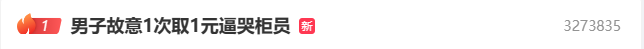 7月3日,浙江宁波的一名男子进银行对工作人员说,需要取款2.5万元。银行工作人员因工作需求例行询问取款用途时,男子被问得不耐烦,就赌气说坐公交。工作人员提示说,不说用途就不能取,男子称要将钱分批取出,一次就取一元钱,自己明天还要过来,不把工作人员开除掉,就不干了。