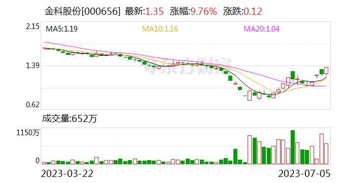 7月5日,金科地产集团股份有限公司披露股票交易异常波动的公告称,金科股份股票于2023年7月3日、7月4日、7月5日连续3个交易日收盘价格涨幅偏离值累计超过20%,根据《深圳证券交易所股票上市规则》的相关规定,属于股票交易价格异常波动的情形。