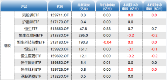 港股ETF方面,恒生ETF(513660)单日净流入0.88亿元,其余无惊无喜。恒生医药ETF回调但无资金补仓。