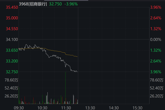 地产走低就不用再分析。招商银行早盘突然跳水,截至午间收盘下跌近4%。