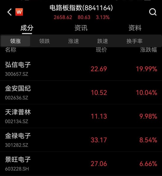 PCB概念股大涨,弘信电子、金安国纪、天津普林涨停。
