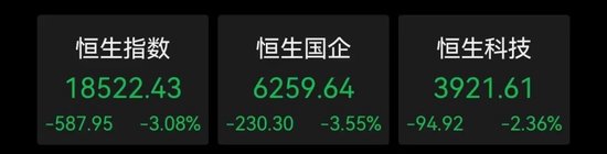 6日早盘,港股开盘小幅拉升后,临近午盘快速跳水。截至午间收盘,恒生指数跌超500点,跌3.11%,失守19000点 ;恒生科技指数跌2.38%。