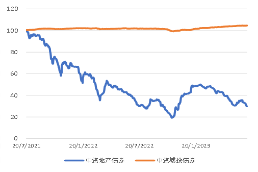 图1. 中资及亚洲美元债指数走势(基准=100)