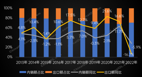家用制冷是所有冷链设备行业里唯一的C端产品,主要销售对象是规模庞大的终端消费者,因此规模最大。在经过了各种政策激励带来的快速发展周期后,整体来说相对比较稳定,特别是国内市场由于饱和度高主要以更新换代为主,导致整个行业近十年来高位盘整,多靠出口拉动。2022年,海外市场受全球通胀高企、俄乌冲突及多国财政刺激政策退出影响,加上年内美欧等多国采取加息政策,居民生活成本增加,一定程度上抑制了消费需求。国内市场由于疫情反复多发,虽然在国家和地方的各种促消费政策刺激下自下半年开始已有企稳回暖迹象,但全年总体呈下滑状态。