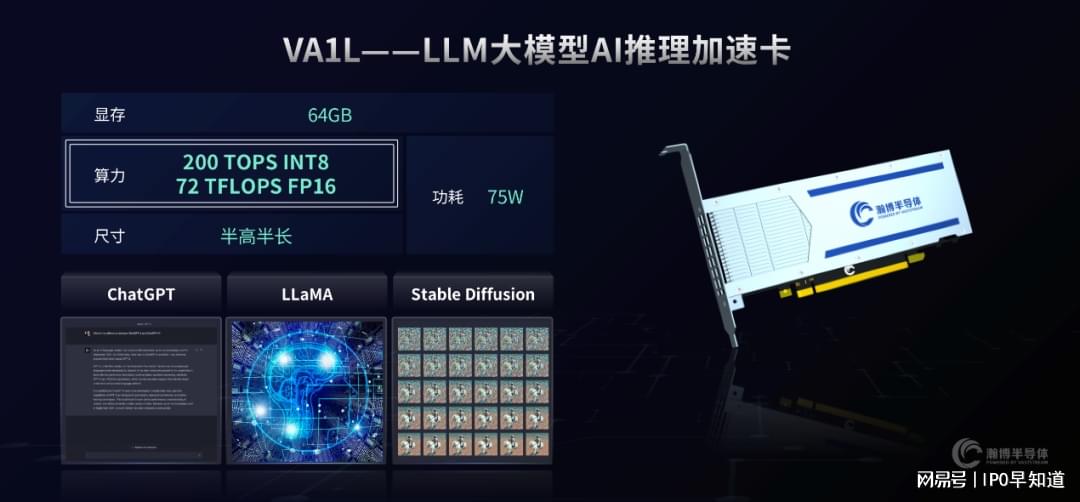 据IPO早知道消息,瀚博半导体于7月6日在2023世界人工智能大会上正式发布第二代GPU SG 100,并推出南禺系列GPU加速卡 VG1600、VG1800、VG14以及LLM大模型AI加速卡VA1L、AIGC大模型一体机、VA12高性能生成式AI加速卡等6款新品,为AI大模型、图形渲染和高质量内容生产提供完整解决方案。