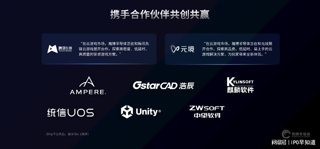 目前,瀚博已与多家行业头部合作伙伴在云游戏、云桌面等领域开展深度合作。在云游戏市场,瀚博半导体正在和腾讯先锋云游戏展开合作,探索高密度、低延时、高质量的安卓游戏方案。瀚博也正在与元境探索安卓游戏解决方案,探索高品质、低延时、易上手的云游戏解决方案,为玩家带来全新体验。此外,瀚博半导体也正在与Ampere、浩辰、麒麟软件、统信、Unity、中望软件等合作伙伴开展深入合作,共建GPU产业生态。