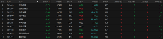 概念股方面,转基因、粮食概念、气溶胶检测、鸡肉概念等涨幅居前。下跌方面,AI概念股再陷调整,华为欧拉、国资云概念、电子车牌、液冷概念、VPN等概念跌幅居前。