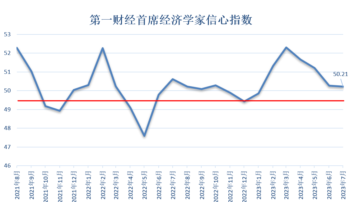 2023年7月,第一财经研究院发布的“第一财经首席经济学家信心指数”为50.21,高于50荣枯线。经济学家们认为,当前我国经济正在逐步复苏,能够实现5%的年度经济增长。他们对第二季度GDP同比增速预测均值为6.97%,中位数为7%。