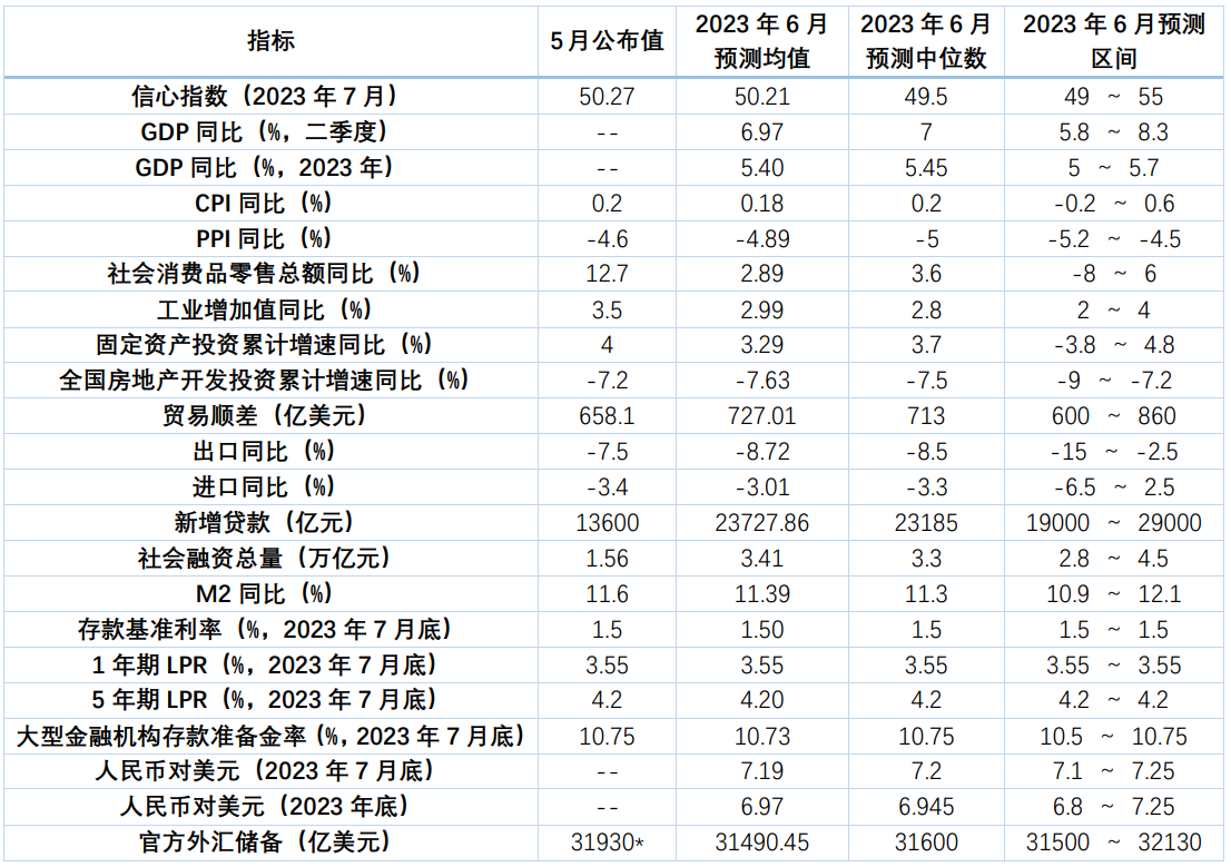 2023年5月最佳预测经济学家6月预测(工业增加值同比增速):