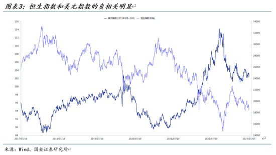 美元指数在美国经济下行和美联储转鸽的背景下或重新转为下行趋势,新兴市场股票或明显受益。正如前文所述,经济周期下行,服务业等滞后部门景气反转,美国经济基本面下行或对美元指数形成明显拖累。与此同时,美联储政策转鸽,也将进一步加剧美元指数下行趋势。回顾恒生指数和美元指数的走势,两者存在明显的负相关性。后续美元贬值趋势将促使港股等新兴市场股票不涨。