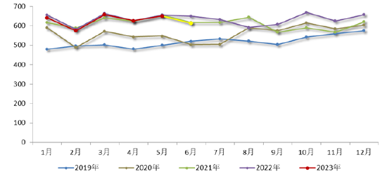 虽然我国甲醇表观消费量呈现逐年增长态势,不断创新高。1-5月份,我国甲醇表观消费量累计为3678.72万吨,与2022年同期的3671.52万吨相比,增加0.20%。6月份甲醇表观消费量预估为40.00吨,上半年甲醇表观消费量预计达到4418.72万吨,同比小幅下滑0.17%。受到宏观大环境的影响,甲醇市场需求恢复不及预期,下游终端跟进滞缓,导致甲醇刚需难以明显提升。下半年先经历高温淡季,部分下游开工受限,对甲醇消耗后进一步缩减,需求端难有明显改善。