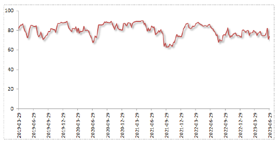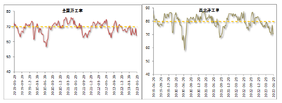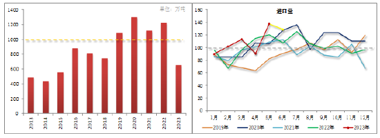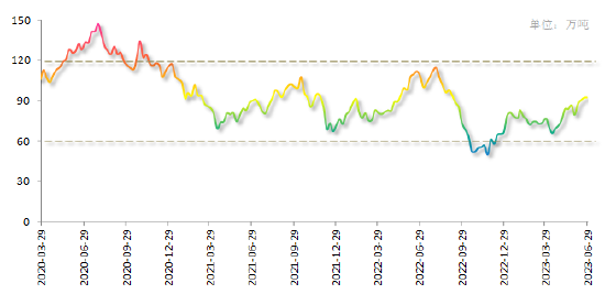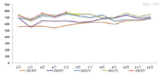 今年以来,甲醇行业开工水平一直不算高,且提升速度缓慢,大部分时间在七成以下。自去年12月份开始,甲醇开工率逐步回落。受到冬季供暖季的影响,为保证民用气,部分气头装置计划内停车检修,进入2023年多数气头装置依旧维持停车状态。上半年,甲醇整体开工率平均为67.20%,去年同期为71.91%,下滑4.71个百分点;西北地区平均开工率为75.72%,去年同期为84.10%。下滑8.38个百分点。甲醇装置开工率不足,导致部分产量损失。从七月份开始逐步减少,后期更是寥寥无几,甲醇开工有望低位回升。
