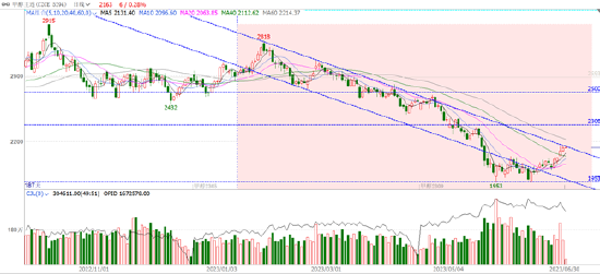 2023年上半年,甲醇期货呈现冲高回落态势。年初,甲醇期货延续前期反弹行情,期价不断攀升,一举上破2800关口,最高触及2818,创上半年高点,同时刷新去年10月份中旬以来新高。春节假期成为行情转折点,甲醇期货在春节假期结束后步入下行通道。美国银行业风暴再起,全球金融市场动荡不安,引发市场避险和担忧情绪持续升温,进而增加抛售压力,国内大宗商品市场走势转弱。甲醇期货顺势回落,下跌过程流畅,盘面在5月下旬连续低开,成功下破2000大关支撑,跌至1953,刷新2020年10月份以来新低。随着市场避险情绪释放,甲醇期货出现止跌迹象,陷入整理态势。