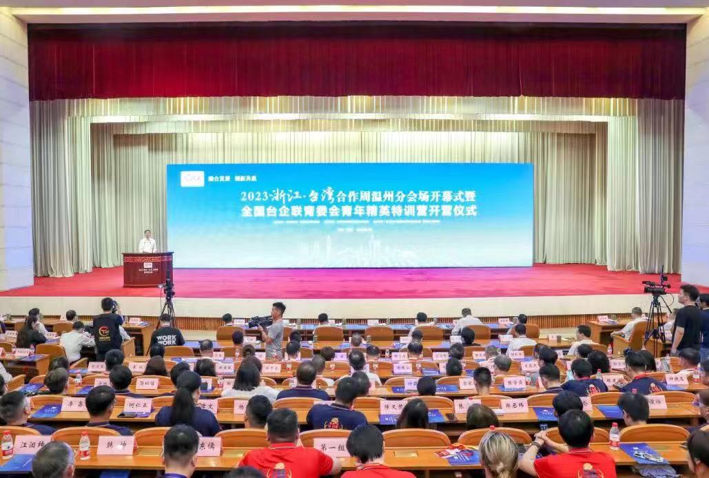 7月7日,2023浙江·台湾合作周温州分会场开幕式暨全国台企联青委会青年精英特训营开营仪式在温举行。来自海峡两岸的工商精英、专家学者、青年才俊相聚一堂,共叙两岸同胞亲情,共谋融合发展机遇