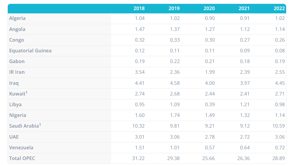 需要指出的是,欧佩克的成员在这8年发生了明显的变化,期间卡塔尔、厄瓜多尔等国退出了欧佩克,而赤道几内亚、加蓬等国加入了组织。