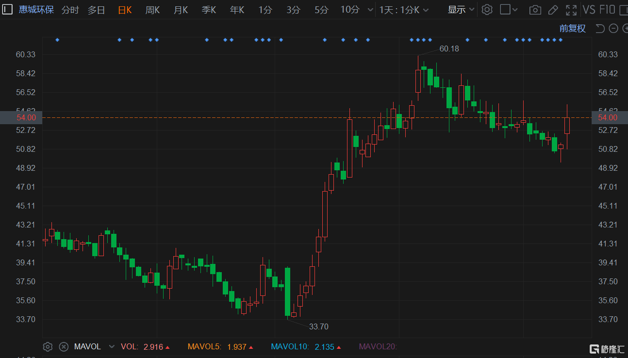 格隆汇7月12日丨惠城环保(300779.SZ)一度拉升涨超7%,现报54元,总市值58.6亿元。该股昨日盘后公告,预计上半年归母净利润0.82-0.92亿元,扣非后归母净利润0.81-0.91亿元,同比扭亏为盈。单季度来看,23年Q2公司预计实现扣非后归母净利润0.45-0.55亿元,环比增长25%-53%,单季度净利润预计再创历史新高。